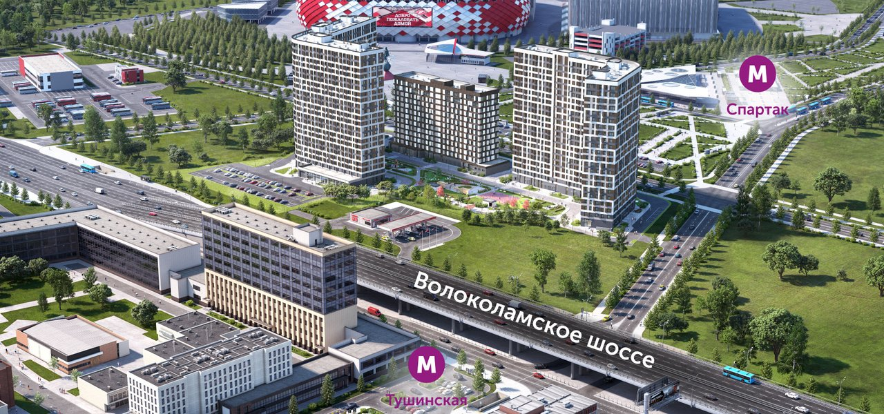 АПАРТАМЕНТЫ. Апарт-комплекс «Движение. Тушино» расположен в районе Покровское-Стрешнево (СЗАО). Рядом с комплексом расположены ст. м. «Спартак» и «Тушинская», до них за несколько минут можно дойти пешком. Также рядом проходит Волоколамское шоссе.