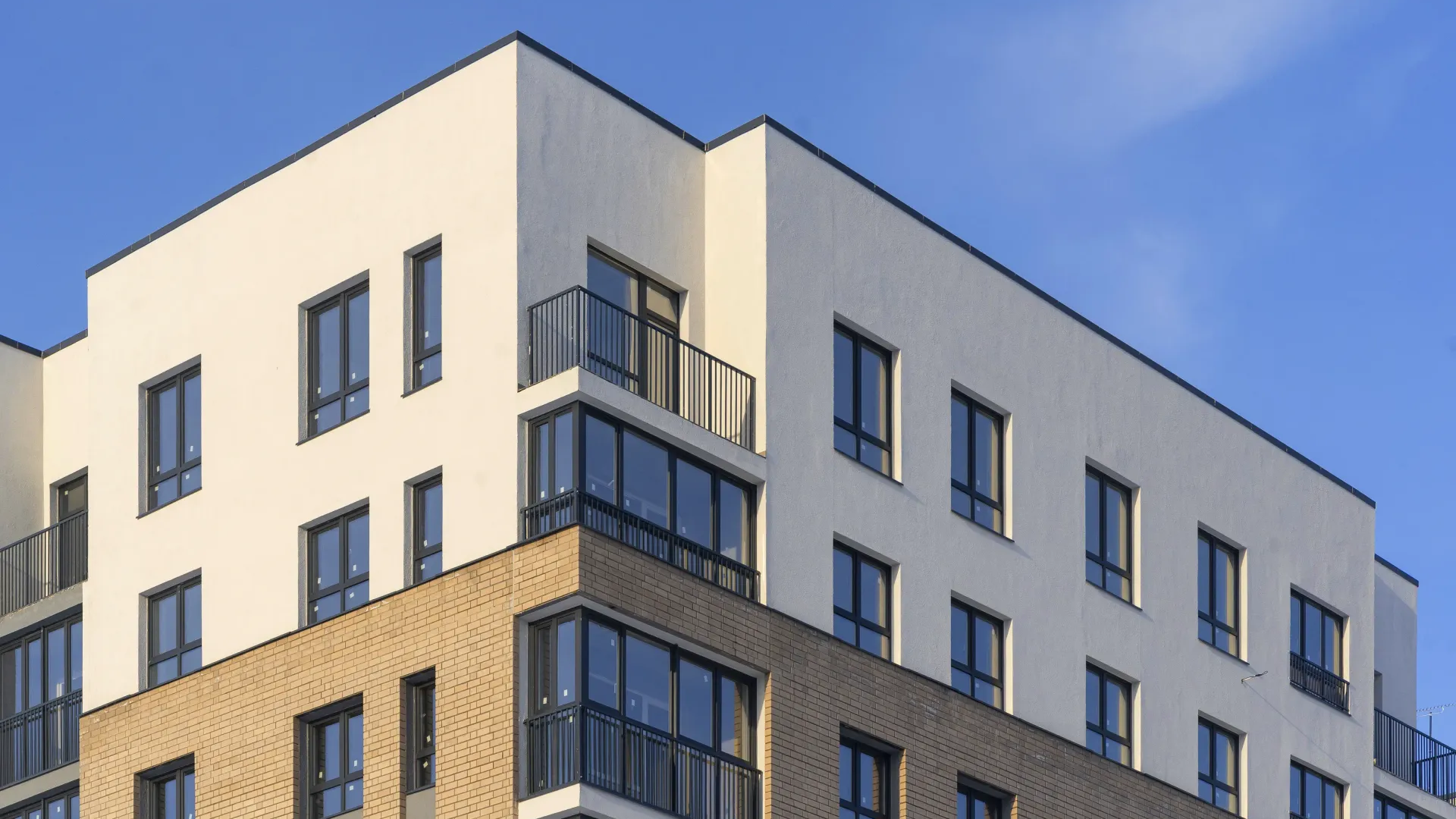 Архитектурный облик Гранд Квартала выдержан в скандинавском стиле с акцентом на экологичность и строгость форм. Фасады облицованы современными материалами, а входные группы оформлены в едином стиле, создавая гармоничное и привлекательное пространство для жителей.