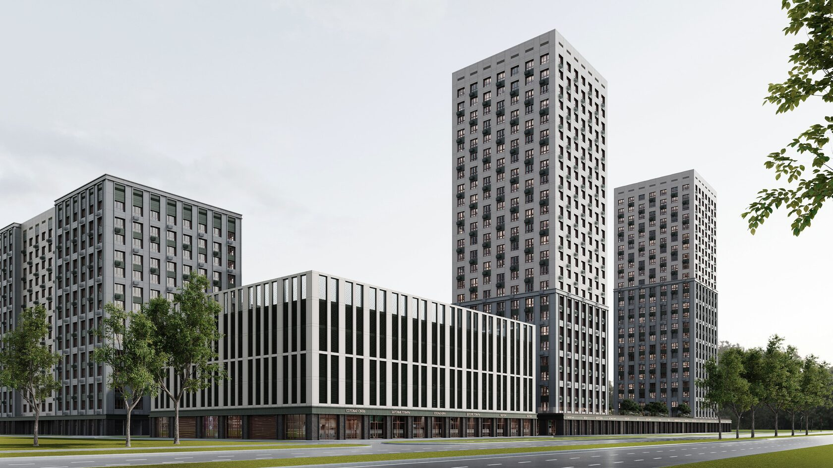 В центре концепции комплекса — просторный приватный двор-парк площадью более 7 000 м², расположенный на стилобате и полностью защищённый от уличного движения. Он включает зоны с детскими и спортивными площадками, велодорожками, игровыми и амфитеатральными зонами, местами для отдыха, лавочками с подогревом и USB-зарядками. На первых этажах расположатся коммерческие помещения — магазины, кафе, службы сервиса, помогающие сделать жизнь проще. Уже в составе комплекса функционирует муниципальный детский сад. В перспективе поблизости откроются культурные пространства — в парке «Семья» планируется летний кинотеатр и арт-образовательные объекты