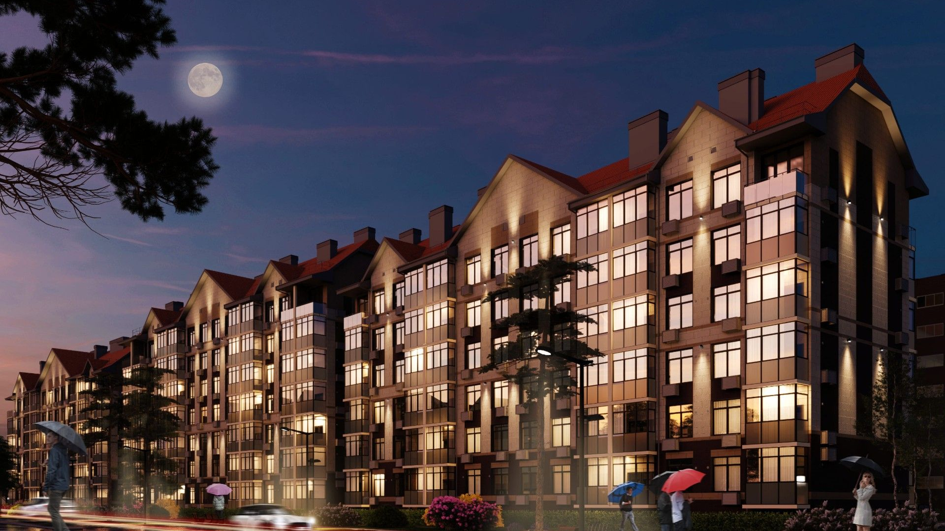 Во дворах установлены игровые комплексы для детей разных возрастов, предусмотрена спортивная площадка, места для отдыха взрослых. Продумана и придомовая территория: цветники и озеленение сделают пространство около дома уютным. К променаду у озера от дома ведут беговые и велодорожки. Для автомобилей выделены открытые парковки.