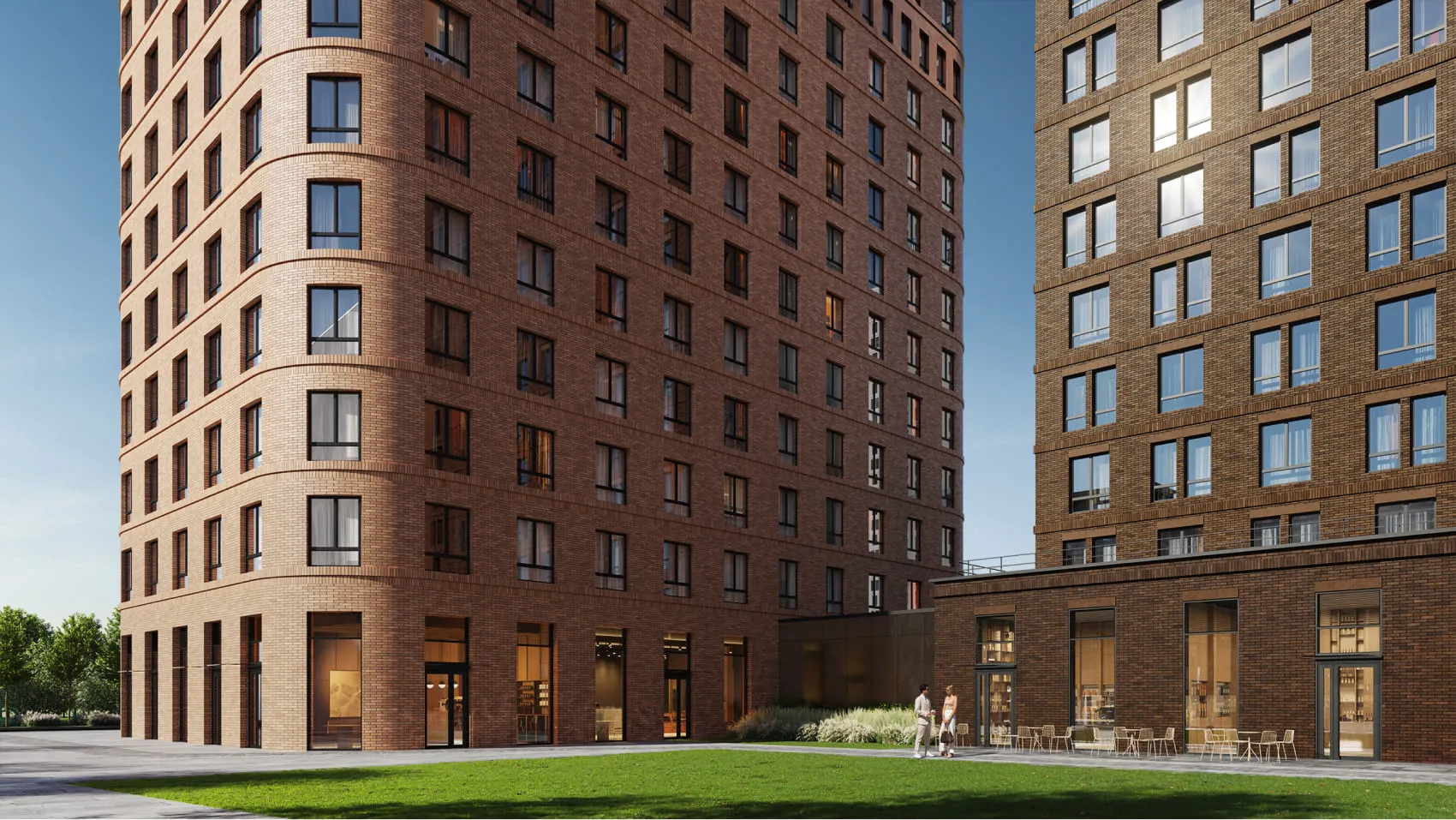 - закрытый двор с детскими площадками и зонами для отдыха и занятий спортом,