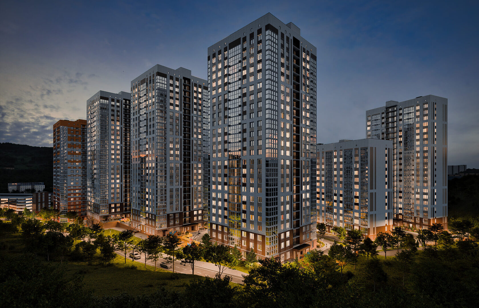 Район, где расположен комплекс, отличается развитой инфраструктурой и большим количеством зеленых зон. Вблизи находятся парки и ухоженные скверы, а также водоемы, которые создают приятную атмосферу для прогулок и отдыха на свежем воздухе. Это идеальное место для тех, кто ценит природу и активный образ жизни в городской среде.