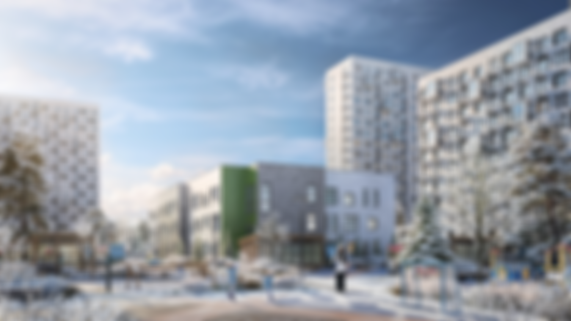 Урбан-блоки состоят из корпусов переменной этажности (от 7 до 17 этажей). Фасады зданий будут отделаны с применением мокрой штукатурки в мягких естественных цветах. Для каждой квартиры будут установлены корзины для кондиционеров. Автором дизайна входных групп является архитектурное бюро Gren. Просторные лобби с панорамным остеклением и сквозным входом выполнят в светлых тонах с использованием керамогранита и дерева.