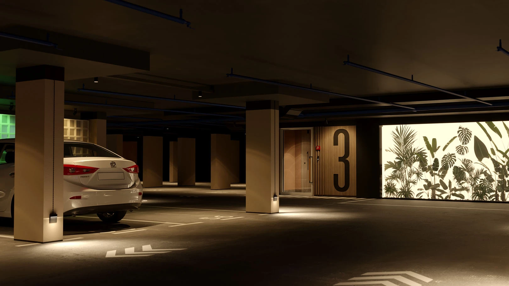 - двухуровневый подземный паркинг с зарядками для электромобилей, мойкой и подкачкой колёс;