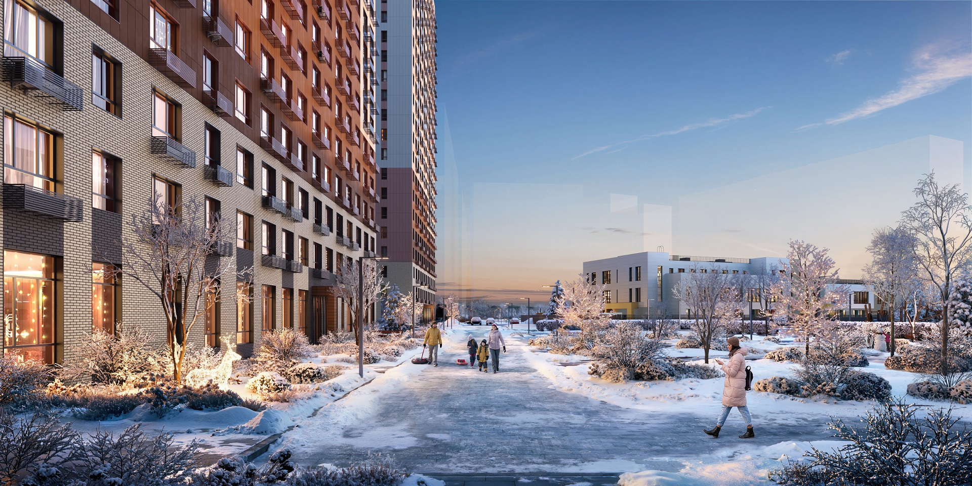 - приватные дворы-парки с прогулочными дорожками, детскими площадками, зонами воркаута и кроссфита;