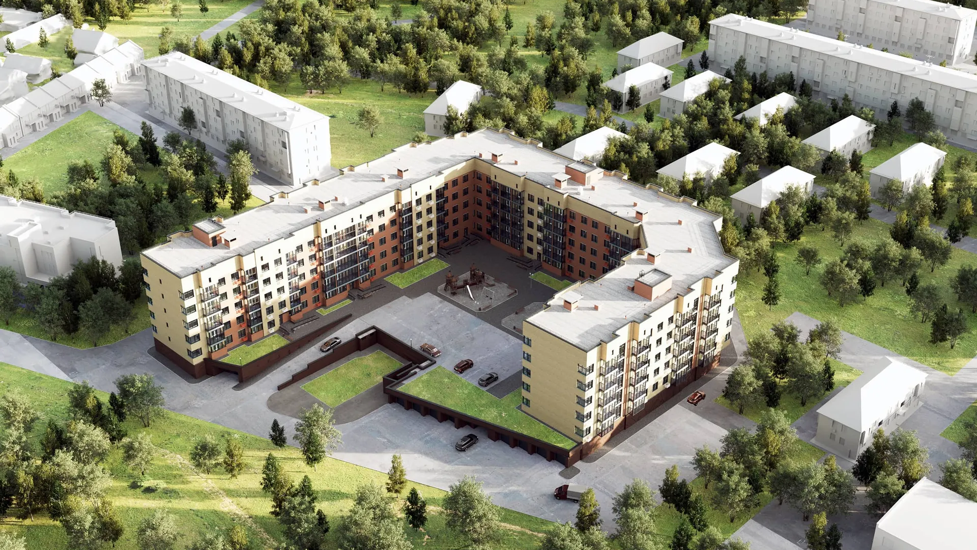 - Безопасный двор на возвышенности с видеонаблюдением и шлагбаумом