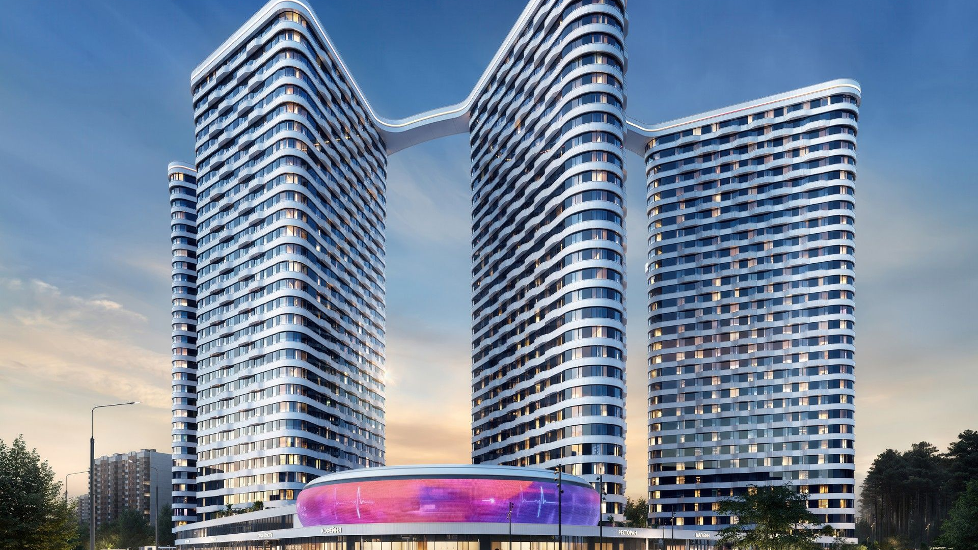 Архитектурная концепция разработана бюро «Горпроект» и сочетает в себе футуристический дизайн и гармонию с окружающей природой. Шесть элегантных высотных зданий расположены по дуге, образуя динамичный и современный облик комплекса. Фасады выполнены с использованием горизонтальных сечений, придающих зданиям легкость и технологичность. С высоты птичьего полета комплекс напоминает часть шестеренки, что подчеркивает его техногенную тематику. Медиа-фасад киберспортивного кластера добавляет современности и делает проект центральной доминантой района.