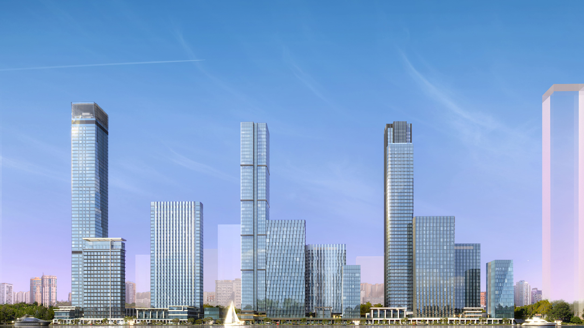 В зоне набережной будет сформирована торговая линия с объектами различных видов коммерческой деятельности. Здесь откроются супермаркеты, рестораны с летними террасами, фитнес-залы и сервис бытовых услуг. Для развлечений и активных занятий будут доступны теннисный и волейбольный центры, водный стадион, приватная пляжная зона и яхт-клуб.