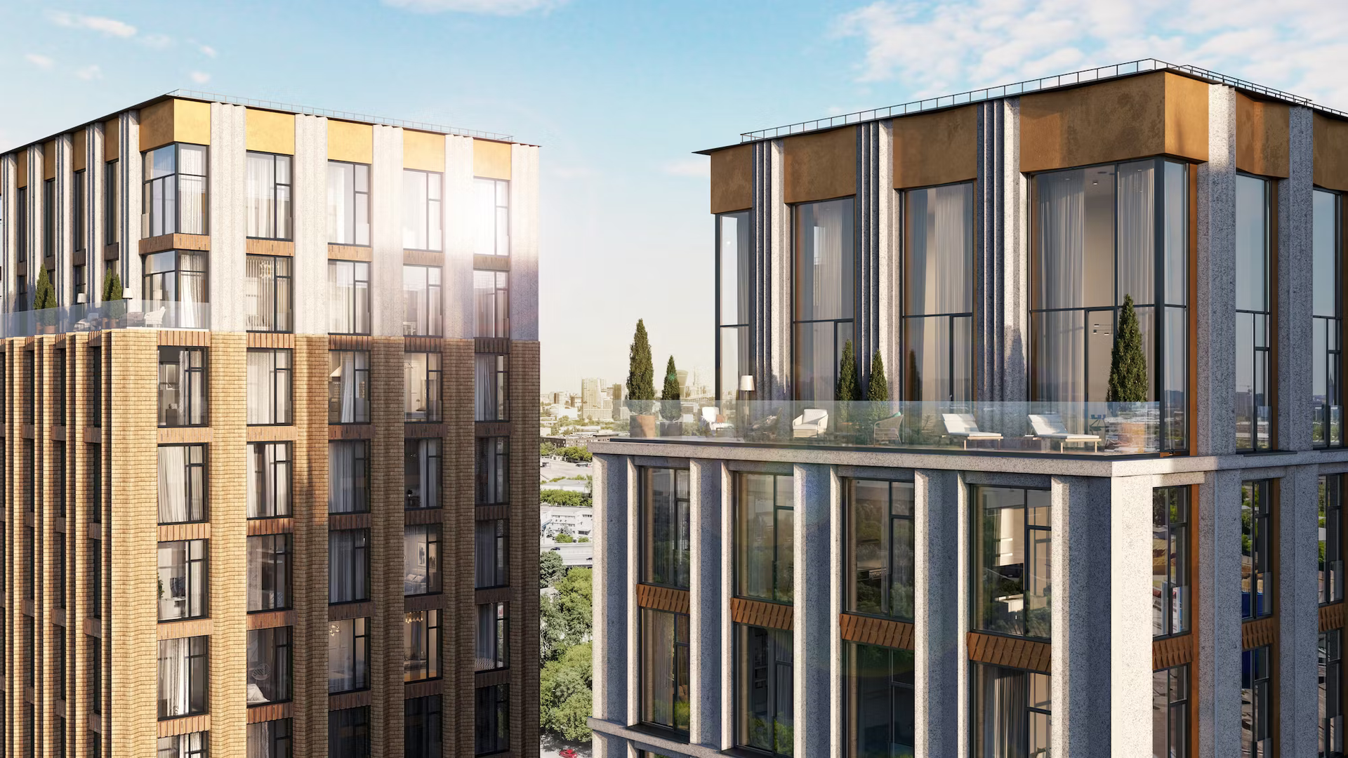 Запроектировано 207 квартир площадью от 47 кв.м до 124 кв.м, в том числе 2-, 3-, 4-, 5-комнатные квартиры, а также двухуровневые пентхаусы с двухсветными гостиными, квартиры с мастер-спальней, квартиры с просторной кухней-гостиной и окнами в ванной комнате. Всего 53 варианта планировок квартир с панорамным остеклением, видом на речной пейзаж и высотой потолков 3,6 м. Специальные технологии при строительстве позволяют объединять несколько соседних квартир в одну. Жилье сдается с отделкой White box. Дополнительно есть возможность выбрать индивидуальный дизайн квартиры и собственный вариант отделки. В жилом комплексе реализуется концепция «закрытый двор без машин». Предусмотрен подземный паркинг для 259 автомобилей, кладовые для размещения велосипедов, колясок и инвентаря, автомойки и комнаты для отдыха водителей. В изысканных лобби находятся ресепшн, уютная зона для встреч, детская игровая комната, комната для переговоров. Внутренний двор оформлен по индивидуальному урбанистическому дизайну. Двор-сад наполнен цветами и деревьями, в их тени находятся детские и спортивные площадки, зоны для отдыха и встреч с друзьями, небольшой пруд. В зимнее время года можно разместить лаунж-зону с мангалом, каток и поле для зимних игр. В частном детском саду и школе на территории комплекса дети смогут раскрыть свои способности и таланты, а также приобрести новых друзей. В жилом комплексе установлены скоростные и бесшумные лифты. В целях обеспечения безопасности ведется круглосуточное видеонаблюдение, есть консьерж сервис.