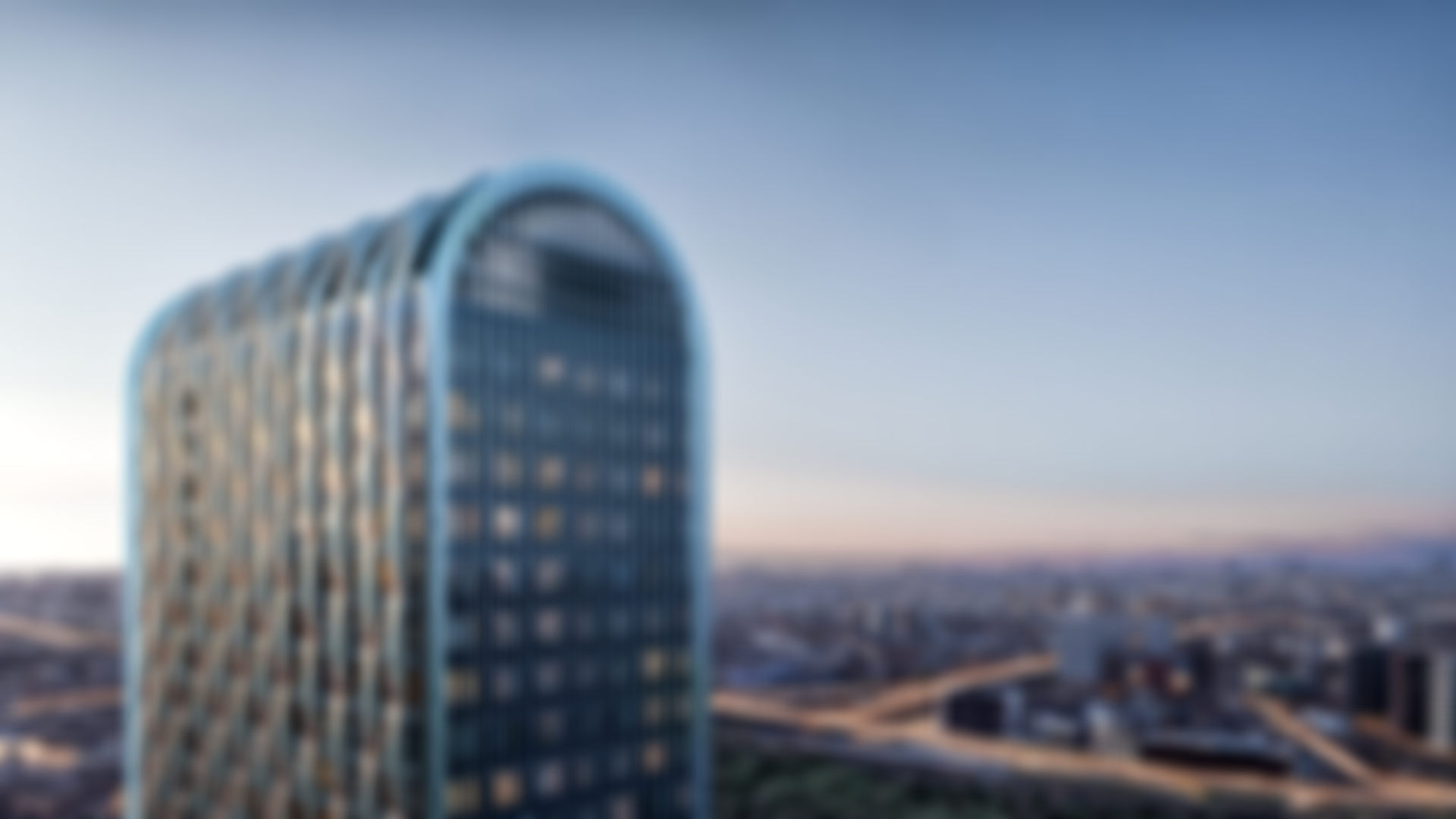 Проект включает две башни высотой от 33 до 40 этажей, объединенные стилобатом. Архитектурное оформление выполнено в современном стиле с элементами минимализма. Фасады зданий сочетают белые и бронзовые оттенки, создавая эффектный контраст. Геометрические декоративные элементы придают зданиям индивидуальность, а панорамные окна обеспечивают отличную инсоляцию и живописные виды на Москву.