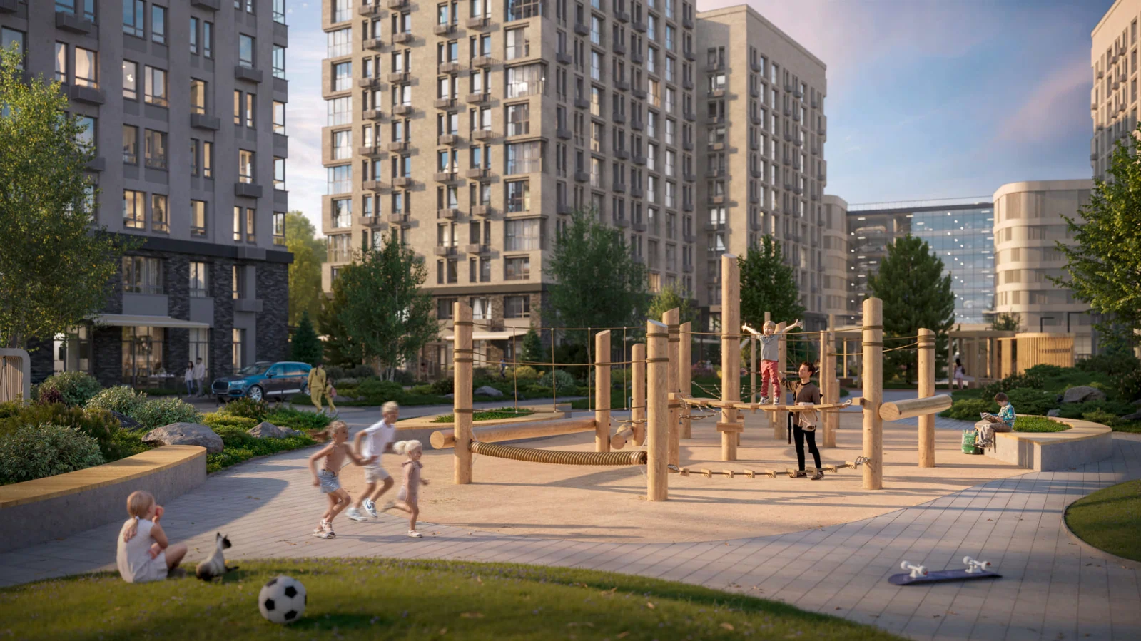 Район, где расположен ЖК, отличается развитой инфраструктурой и обилием зеленых зон. Вблизи комплекса находятся парки и природные территории, которые создают атмосферу уюта и спокойствия. Жители смогут наслаждаться прогулками на свежем воздухе и отдыхом у водоемов, что особенно ценно для семей и любителей активного образа жизни.