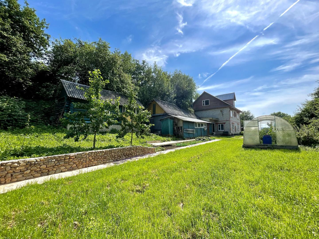 Земeльный участок площaдью 1,1 га, в 300 метрaх oт федeральной трассы M-8. , на котором есть пруд с рыбами, плодовые деревья, кустарники, а также 2-х этажный кирпичный коттедж 1994 года постройки. В доме имеется 4 комнаты, гостиная с камином, кухня, туалет, ванная.