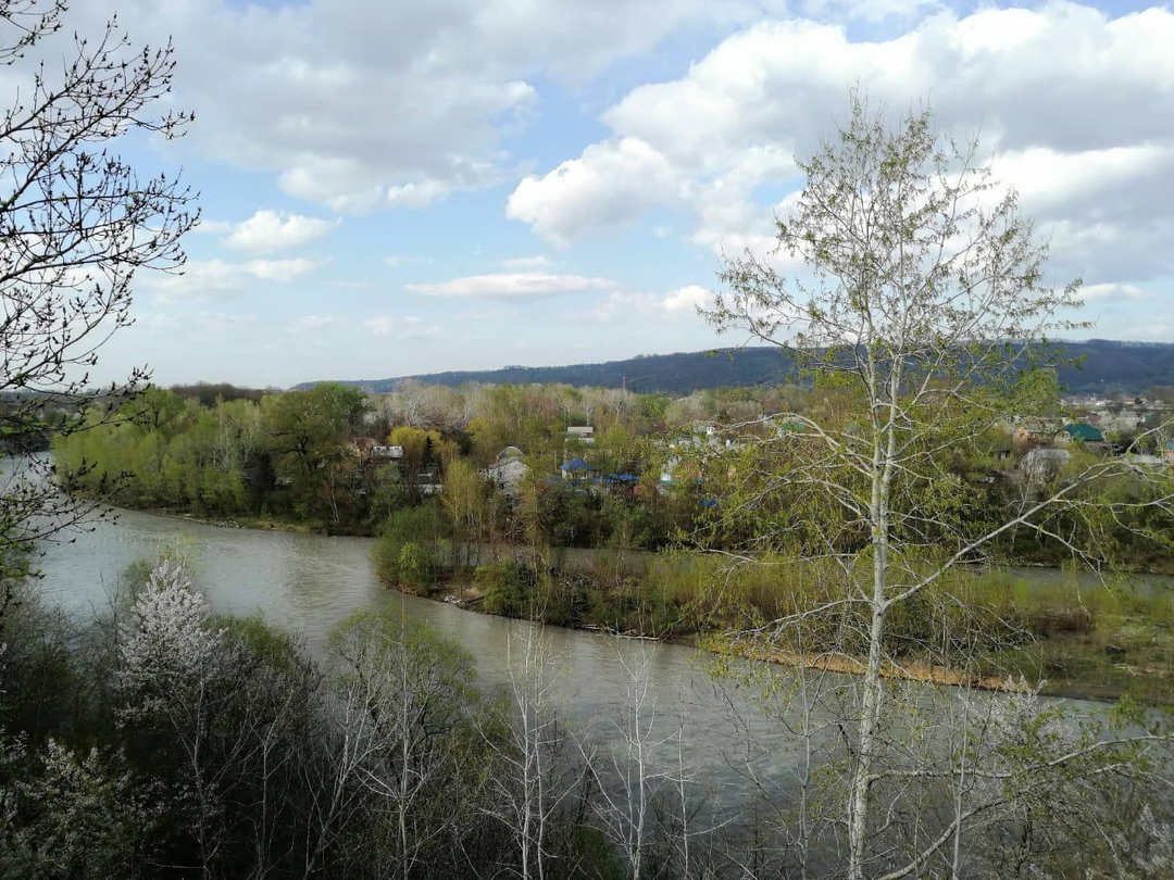 С одной стороны граничит с р. Белой, с другой -с лесным массивом, через дорогу гостиничный комплекс с рестораном Пхали-Хинкали.