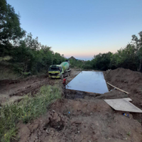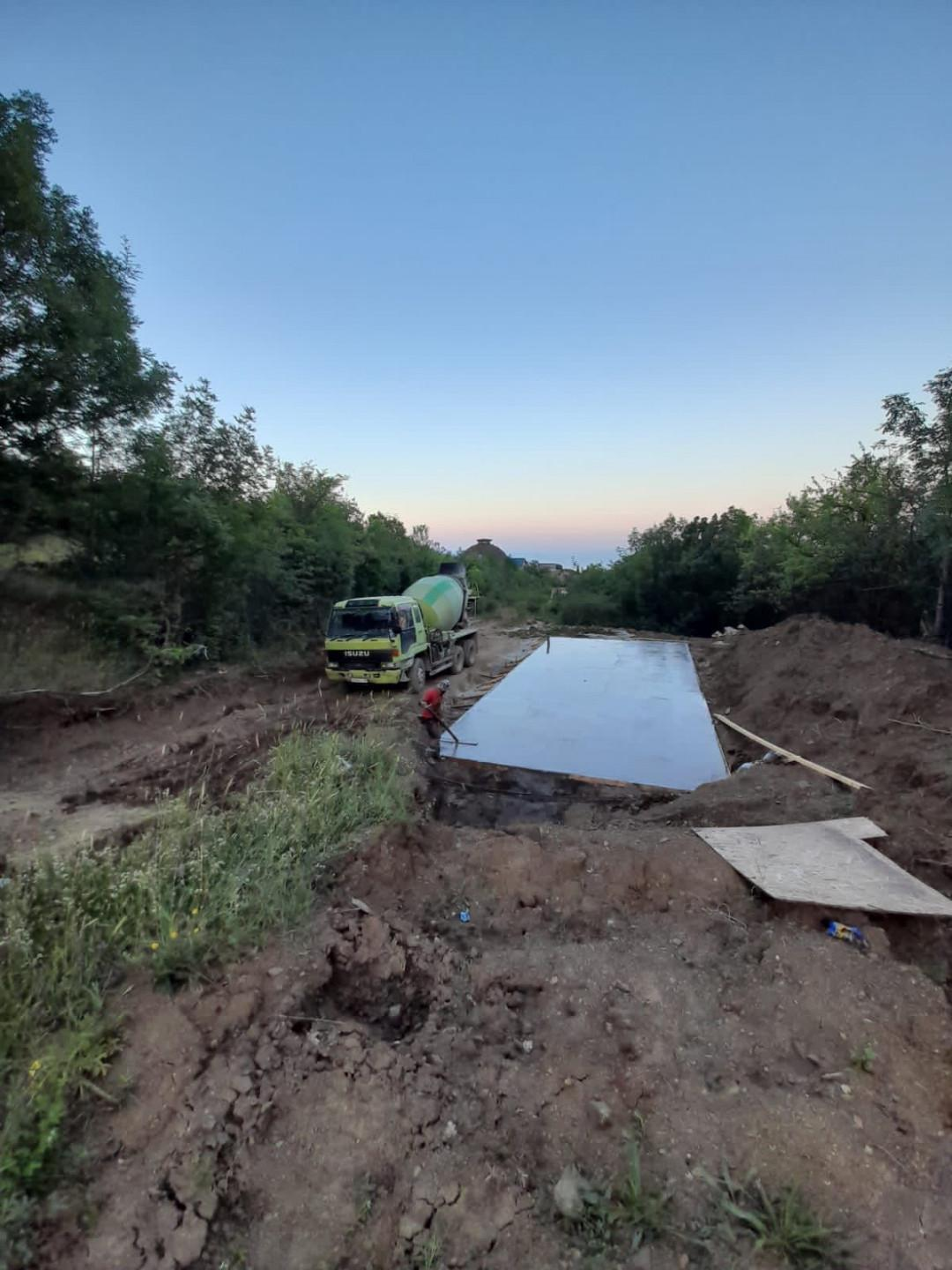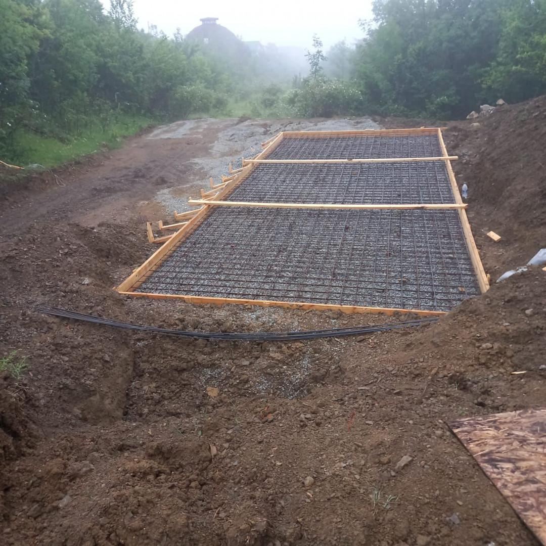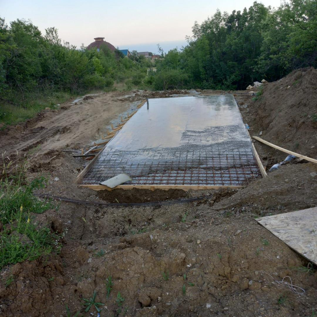 На территории уже подготовлен фундамент (плита) , что сокращает сроки и затраты а возведение дома.