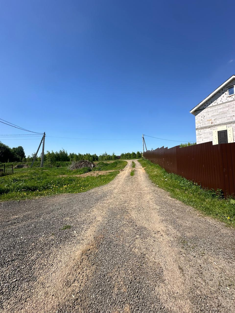 Участок - ровный, сухой. Подъезд асфальтированная дорога и перед участком 30 метров гравийки.. Огорожен с 3 сторон( сзади и по бокам). 100 м до березового леса, 800 м до р.Пахра.