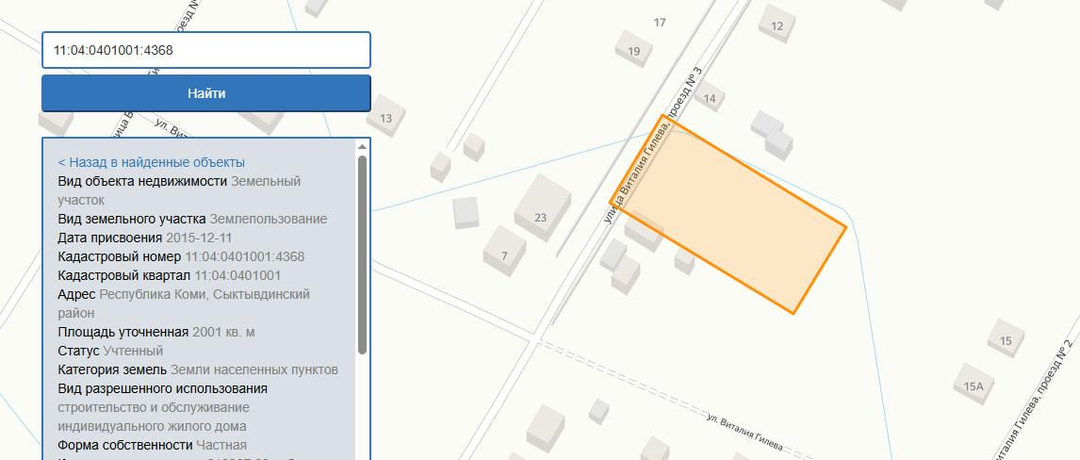 • Кадастровый номер: 11:04:0401001:4368 (легко найти на публичной кадастровой карте).