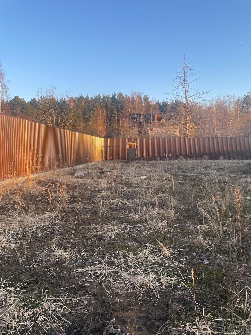 Истринский район, деревня Исаково. 23 сотки. Электричество 25 квт. Колодец 12 колец. Забор профлист со всех сторон высотой 3 метра. Фундамент монолитный на дом площадью 130 кв.м.