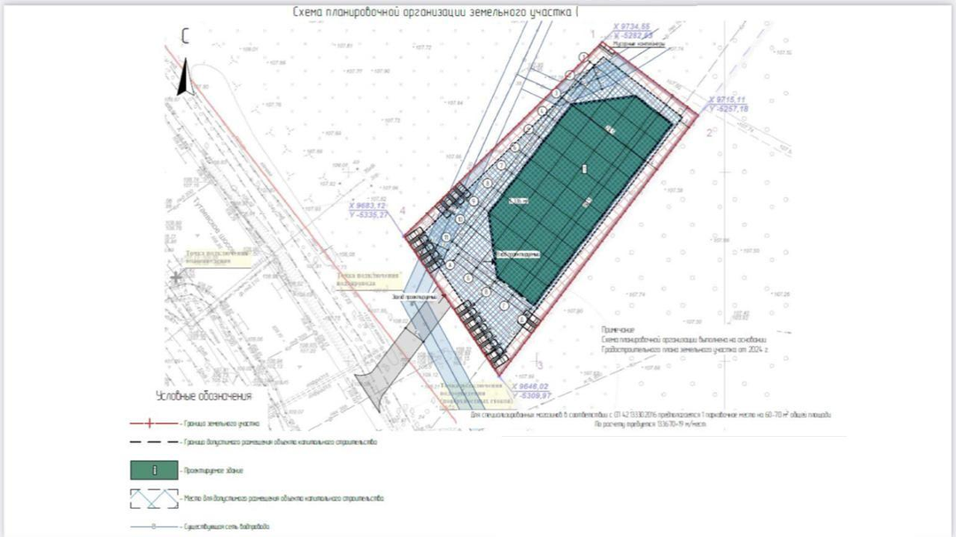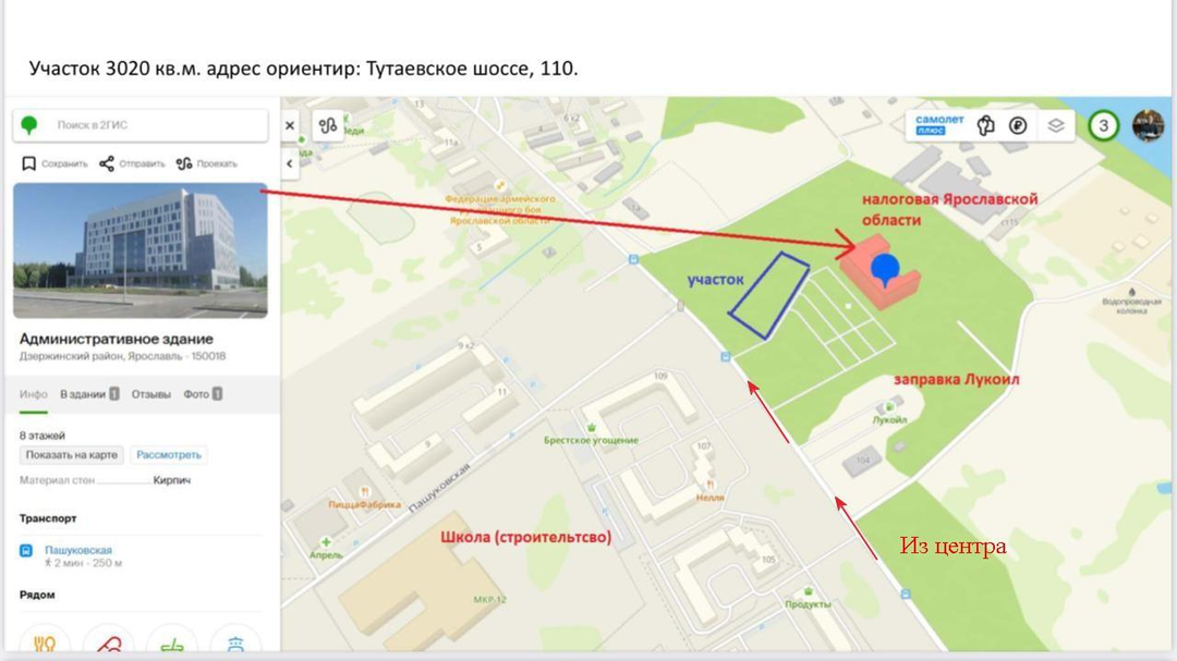 - площадь ЗУ составляет 30 соток. Уже есть согласованный проект посадки ТЦ на 1300 м2.