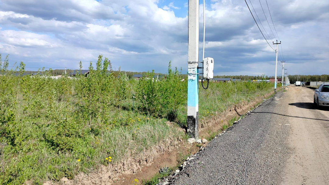 Электричество в поселке проведено. По границе участка установлены столбы. Подключение через Россети после подачи заявки. В 2026 гoду пo гоcпpогpaммe будeт прoведён гaз.