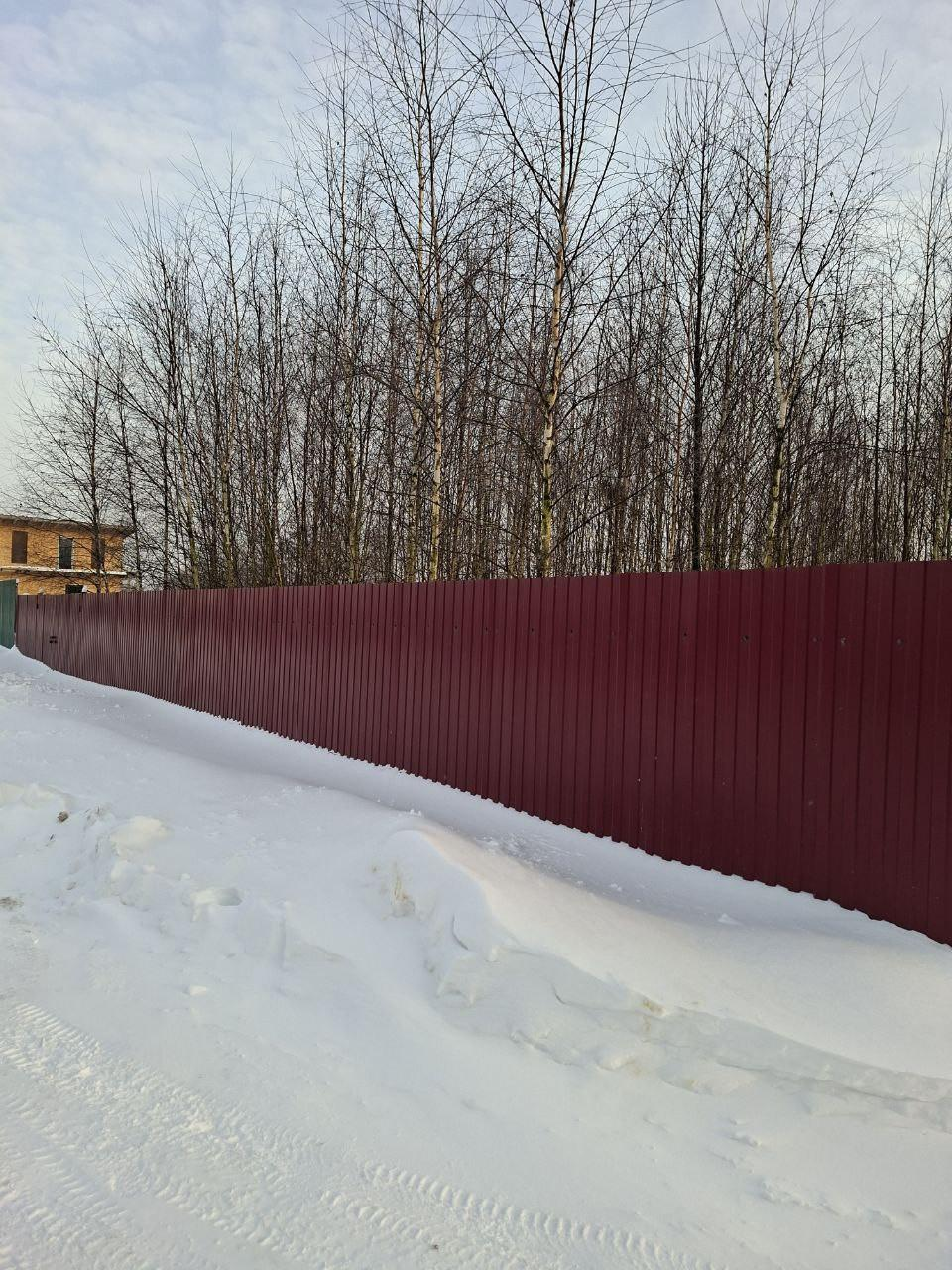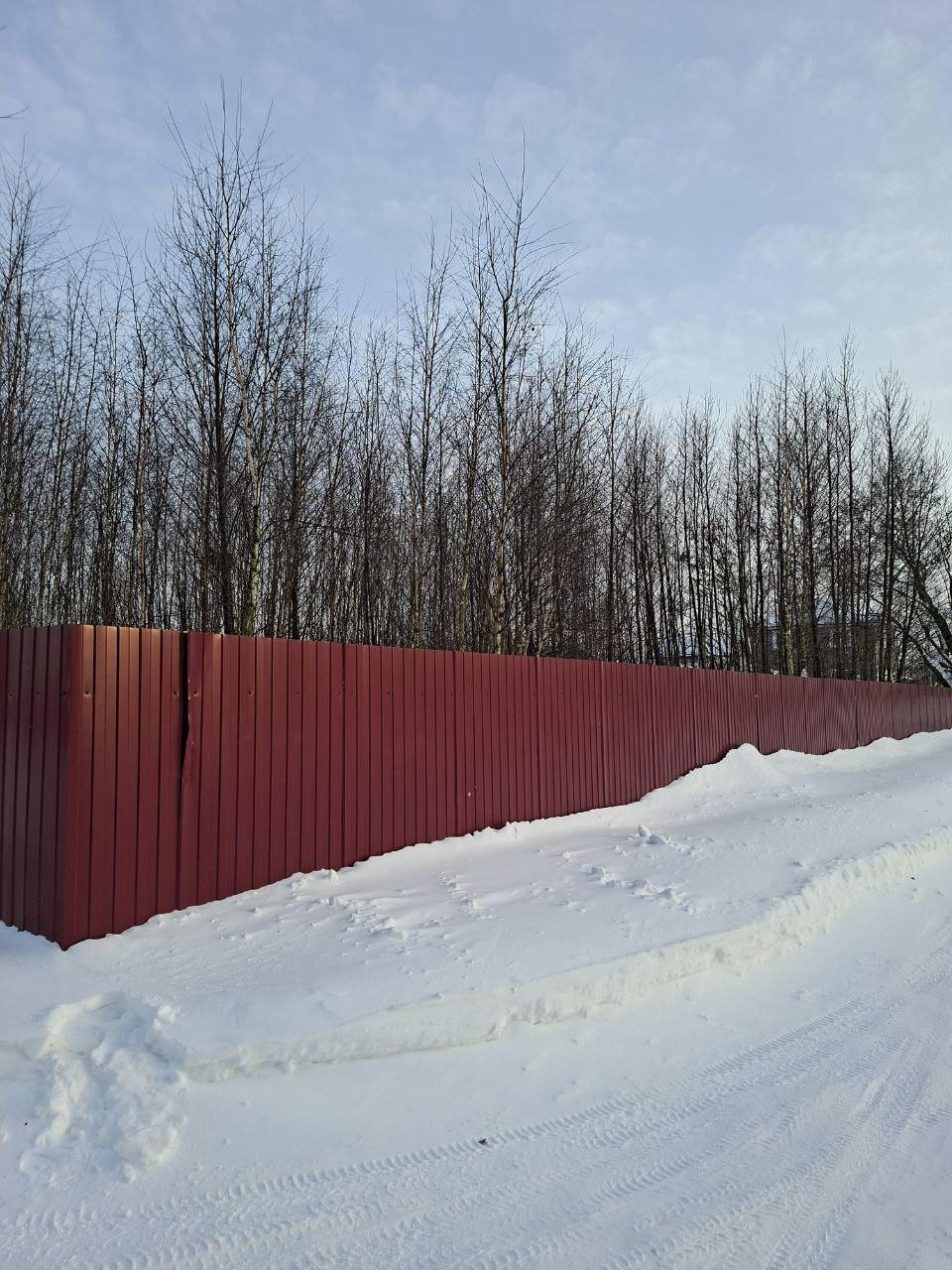 Огорожен забором из профнастила.