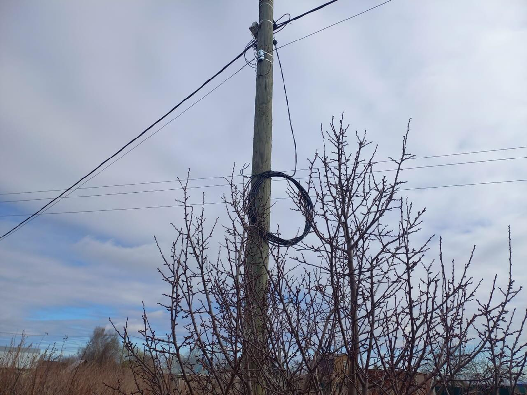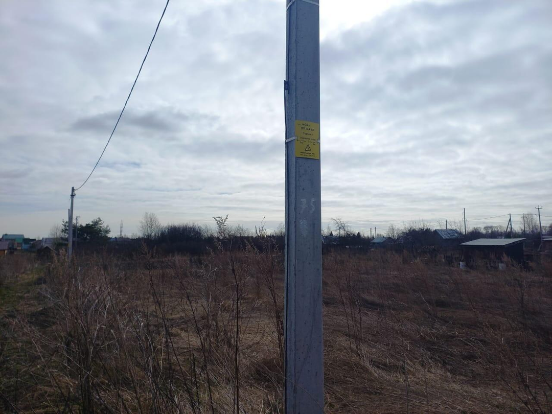 На границе участка установлен электрический столб.