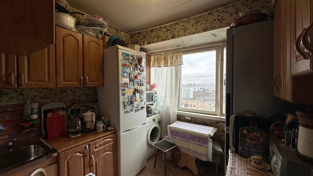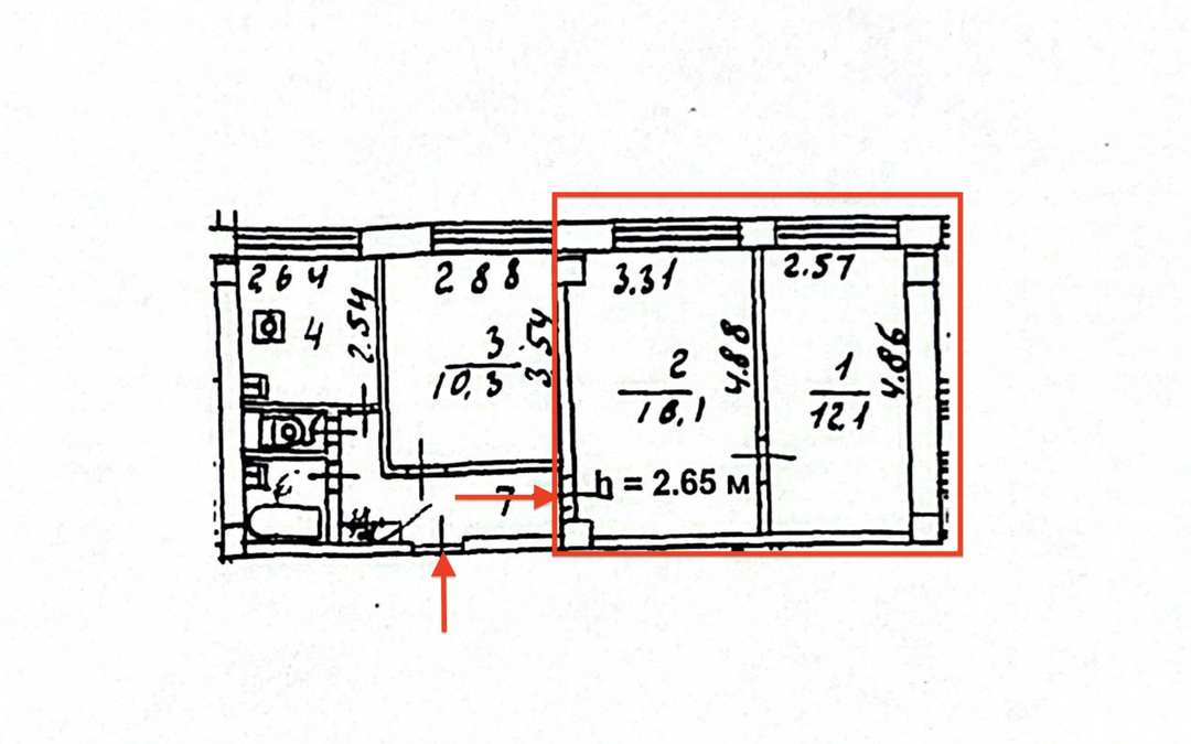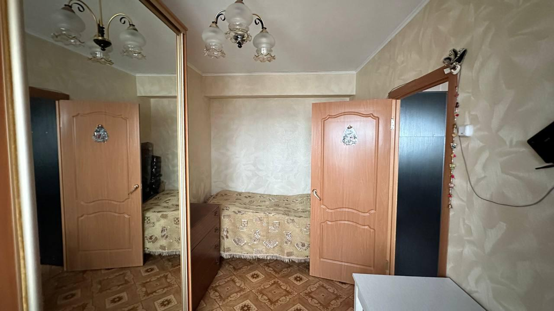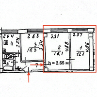 Квартира находится на 14-м этаже. Две комнаты 16,1 кв.м. и 12,1 кв.м. (общая 28,2 кв.м.) представляют по сути отдельную двухкомнатную квартиру. В комнатах произведена замена окон, выравнены потолки, сделан косметический ремонт.