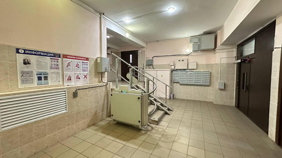 В доме два лифта: пассажирский и грузовой. В подъезде устройство для подъема маломобильных групп населения. Выход из подъезда на две стороны дома.
