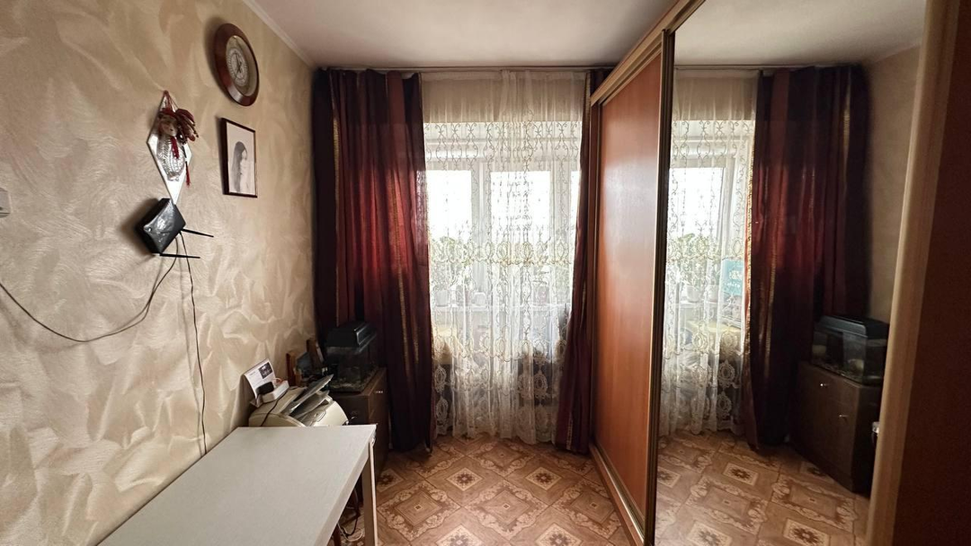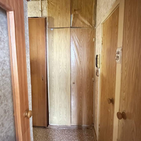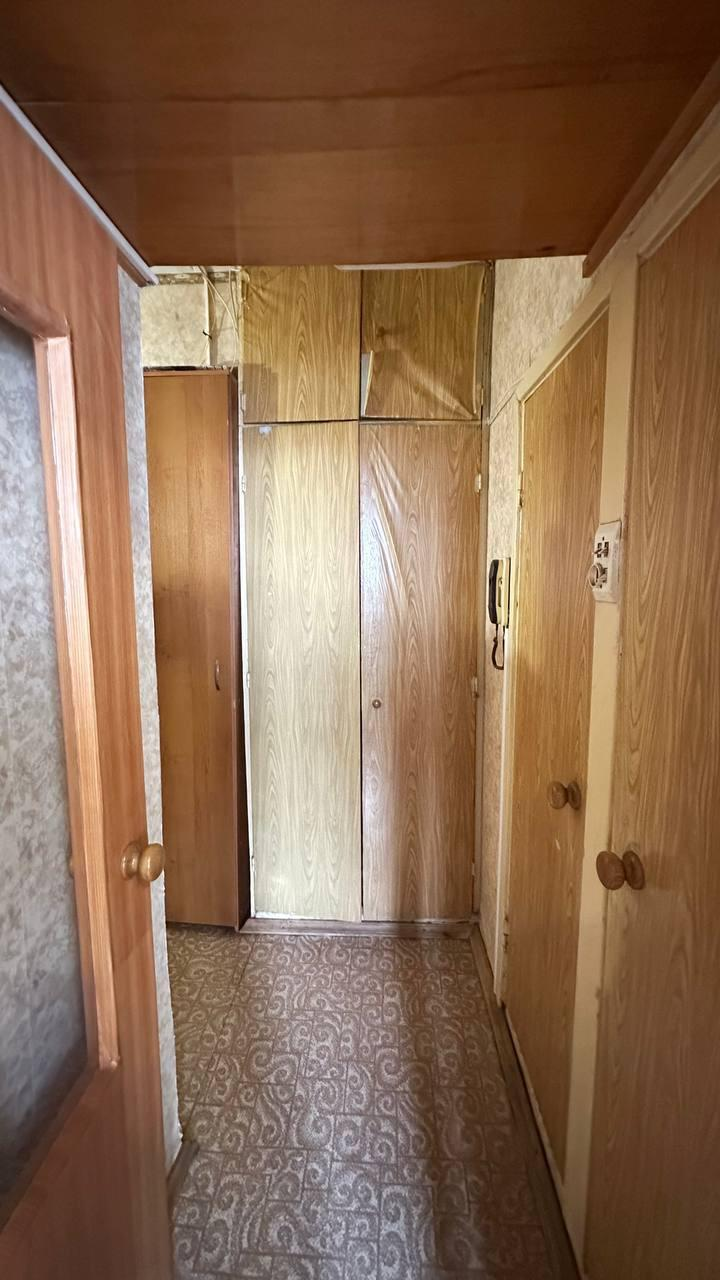 Санузел раздельный. В коридоре имеется шкаф. Кухня поделена на две зоны собственников в квартире.