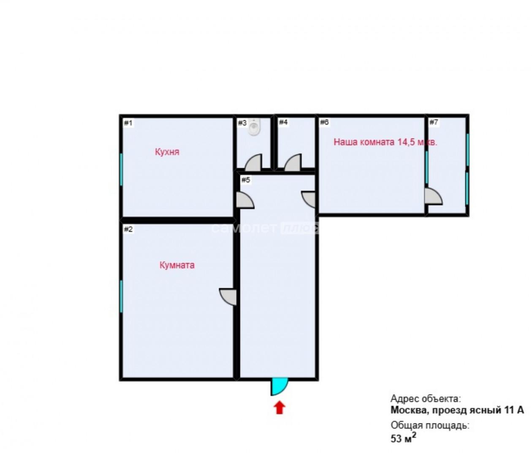 Продается 1/2 доли в праве собственности на 2-х комнатную квартиру в г. Москва, р-н Медведково, проезд Ясный д. 11А.